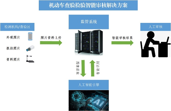 通过建设和健全一套与机动车安全技术检验监管平台联动审核机制。实现“智能审核+人工复核”的业务模式。(一)对审核合格的,将结果反馈至检验监管平台,审核员不需要人工复核,自动审核系统可审核通过。(二)对涉嫌异常的,将全部推送至人工复核岗位进行人工复核。其中,对于检验机构上传照片质量不符合要求的,将直接退回检验机构。